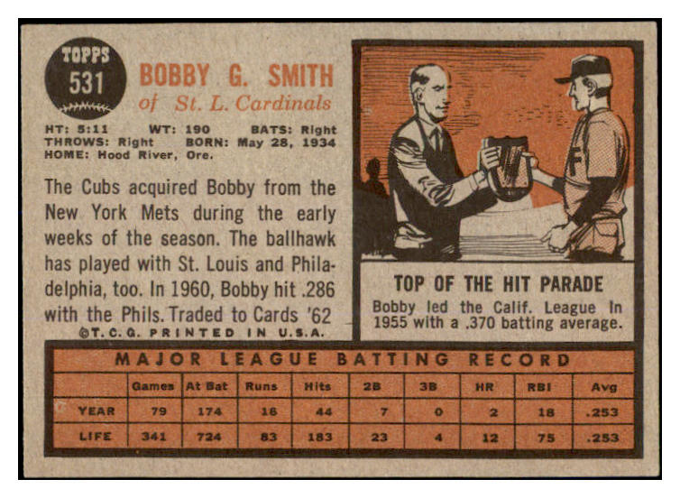 1962 Topps Baseball #531 Bobby Smith Cardinals EX-MT 527781
