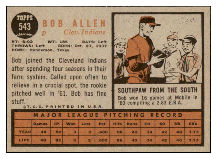 1962 Topps Baseball #543 Bob Allen Indians NR-MT 531076