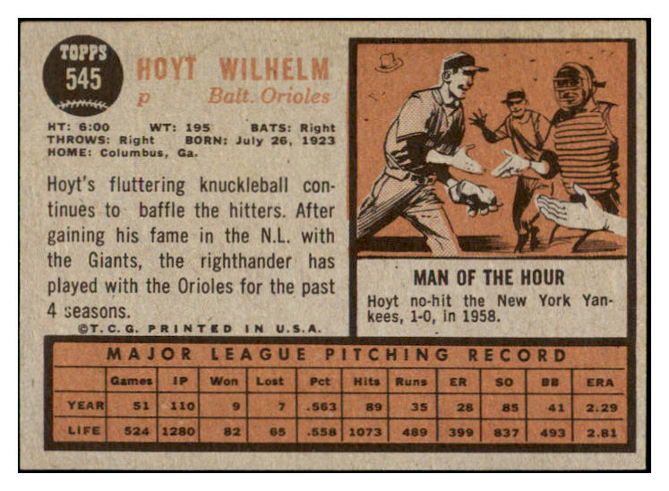 1962 Topps Baseball #545 Hoyt Wilhelm Orioles NR-MT 531012