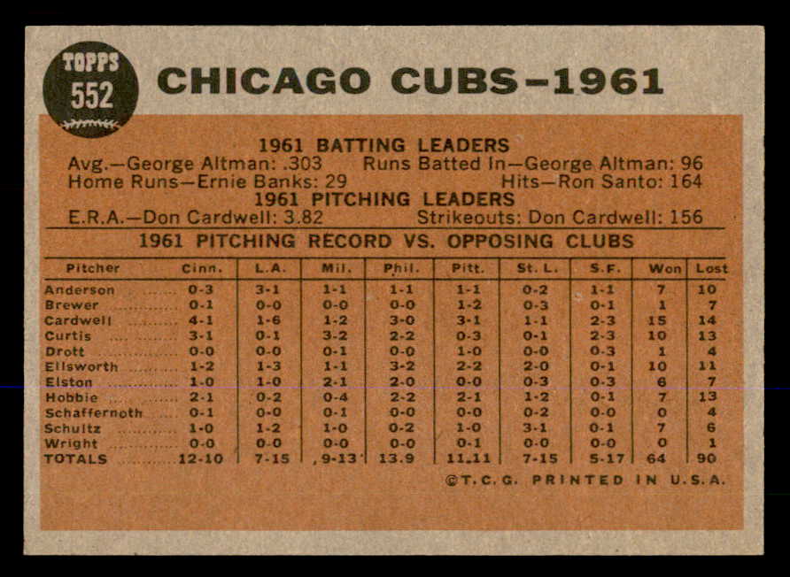 1962 Topps Baseball #552 Chicago Cubs Team EX-MT 548037