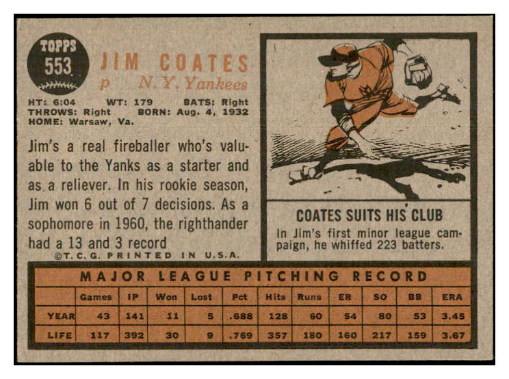 1962 Topps Baseball #553 Jim Coates Yankees EX-MT 534207