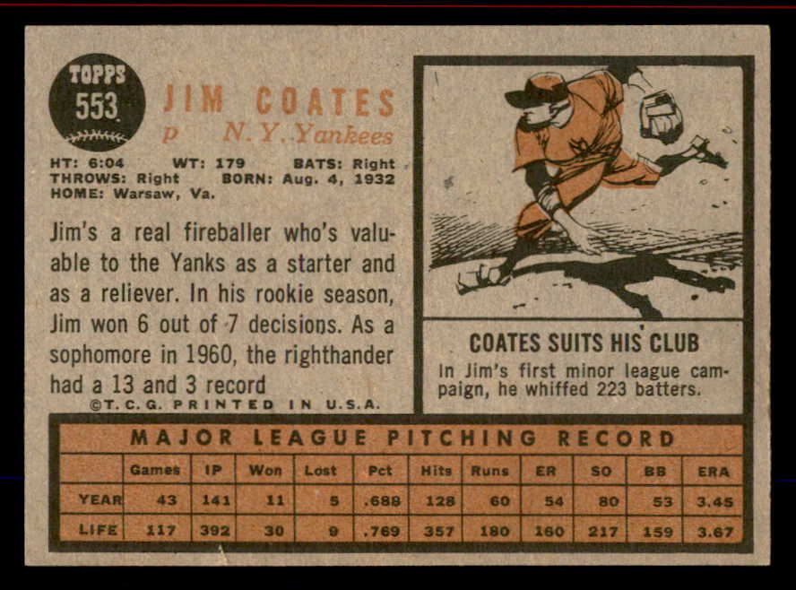 1962 Topps Baseball #553 Jim Coates Yankees EX-MT 542823