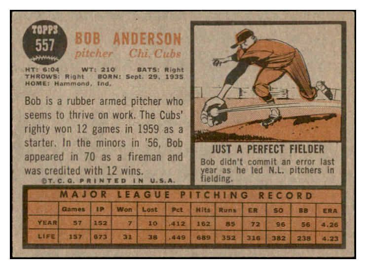 1962 Topps Baseball #557 Bob Anderson Cubs EX-MT 534204