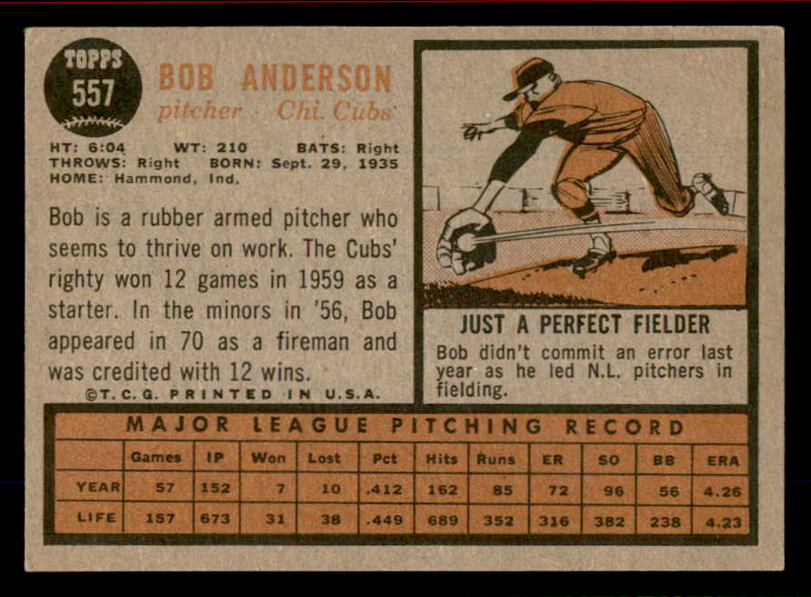 1962 Topps Baseball #557 Bob Anderson Cubs EX-MT 542824