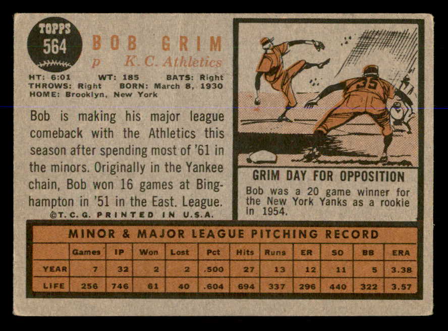 1962 Topps Baseball #564 Bob Grim A's VG-EX 548029