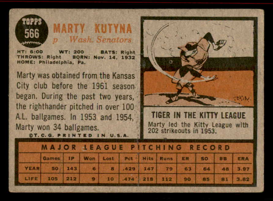 1962 Topps Baseball #566 Marty Kutyna Senators VG-EX 542859