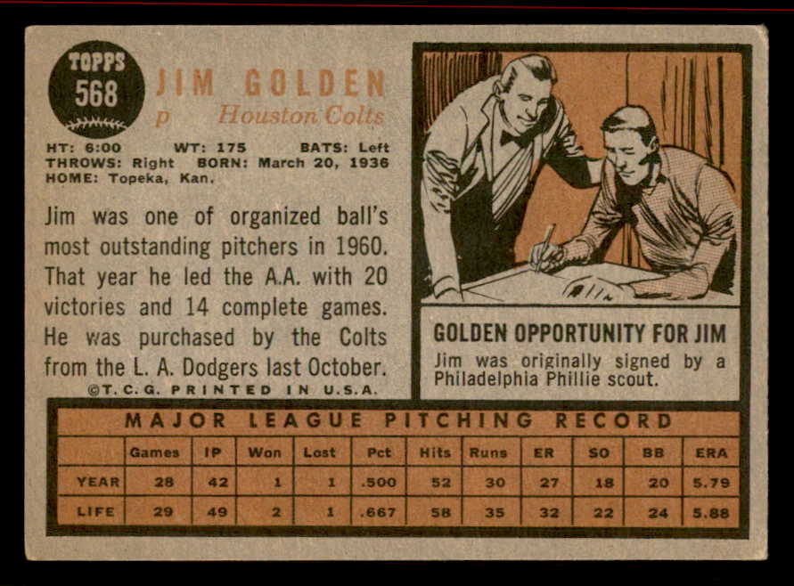 1962 Topps Baseball #568 Jim Golden Colt .45s VG-EX 542860