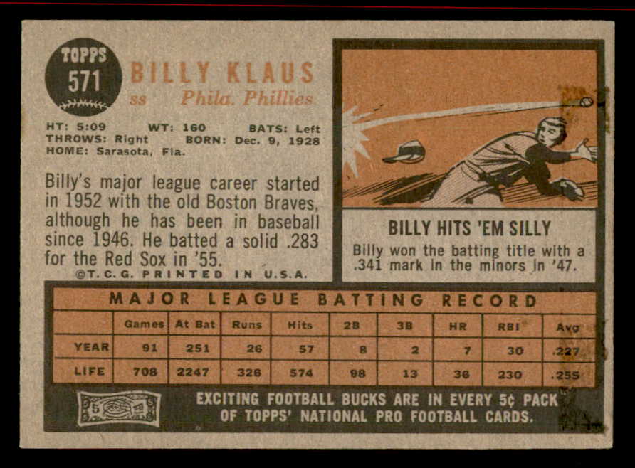 1962 Topps Baseball #571 Billy Klaus Phillies VG-EX 542862