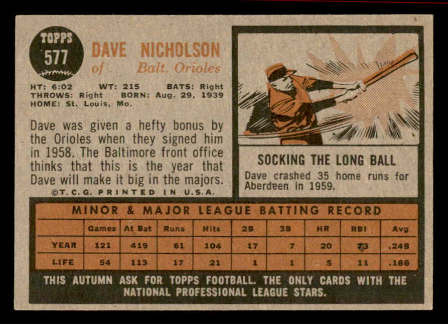 1962 Topps Baseball #577 Dave Nicholson Orioles EX-MT 542829