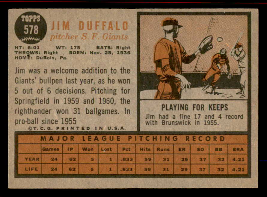 1962 Topps Baseball #578 Jim Duffalo Giants NR-MT 542814