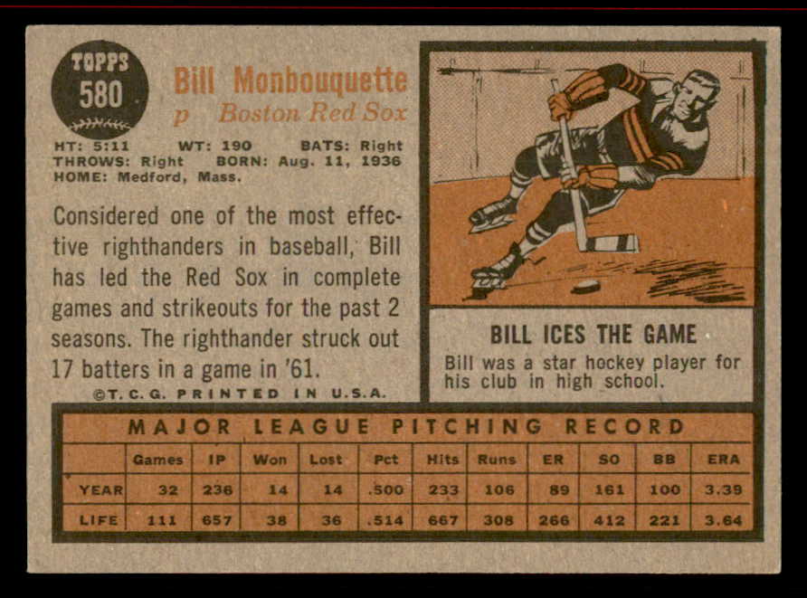 1962 Topps Baseball #580 Bill Monbouquette Red Sox EX-MT 542832