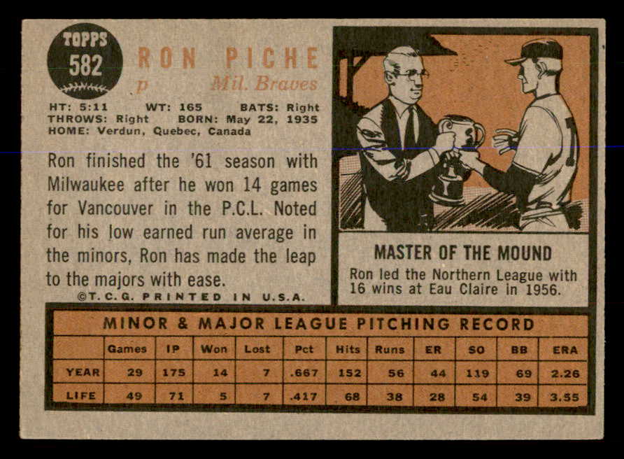1962 Topps Baseball #582 Ron Piche Braves EX 548017