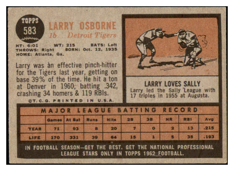 1962 Topps Baseball #583 Larry Osborne Tigers EX-MT 531065