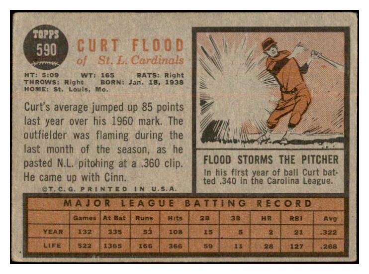 1962 Topps Baseball #590 Curt Flood Cardinals VG-EX 534323