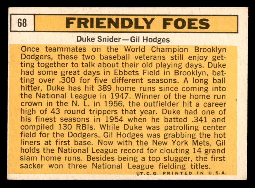 1963 Topps Baseball #068 Duke Snider Gil Hodges EX-MT 544597