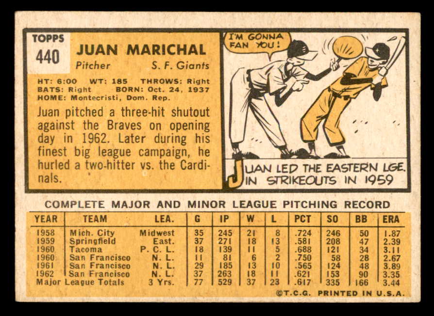1963 Topps Baseball #440 Juan Marichal Giants EX 544584