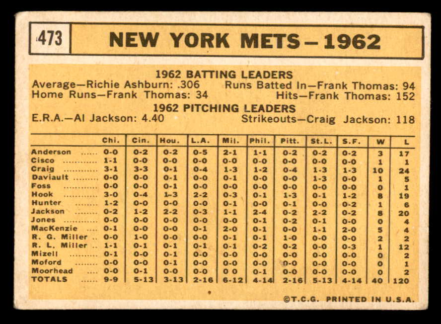 1963 Topps Baseball #473 New York Mets Team VG-EX 544590