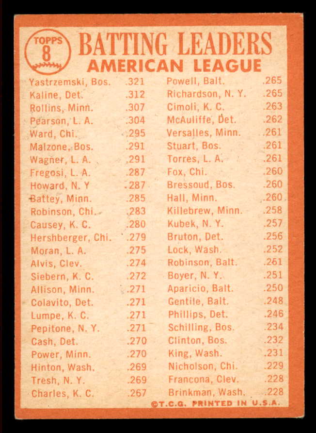 1964 Topps Baseball #008 A.L. Batting Leaders Yastrzemski EX 542054