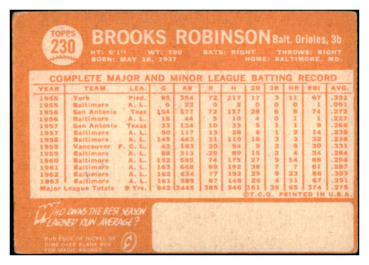 1964 Topps Baseball #230 Brooks Robinson Orioles VG 527218