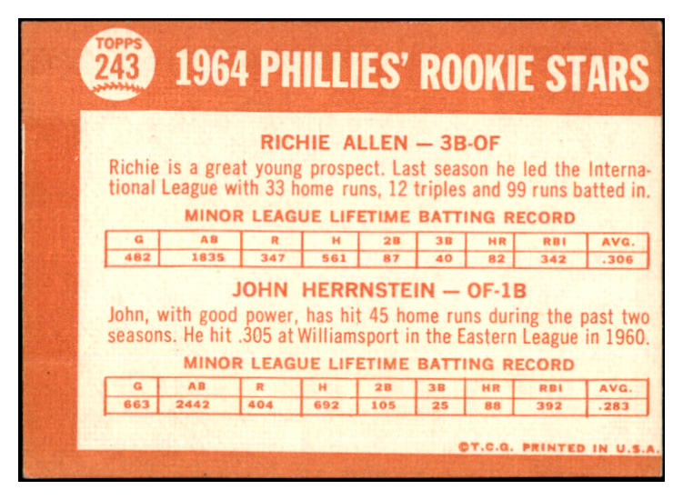 1964 Topps Baseball #243 Richie Allen Phillies VG 527214