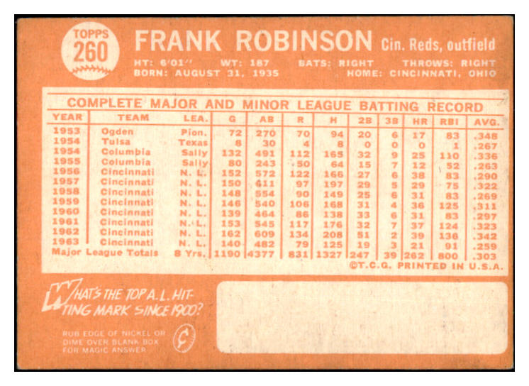 1964 Topps Baseball #260 Frank Robinson Reds EX 531137