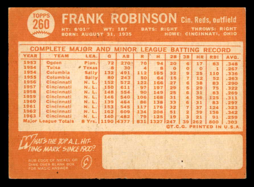 1964 Topps Baseball #260 Frank Robinson Reds VG-EX 540688