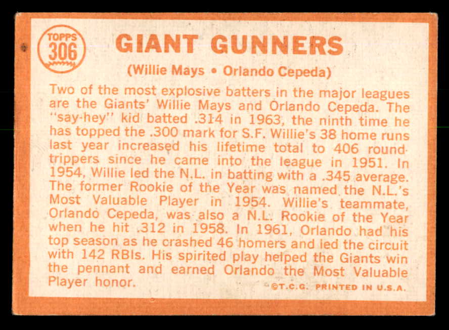 1964 Topps Baseball #306 Willie Mays Orlando Cepeda VG 540716
