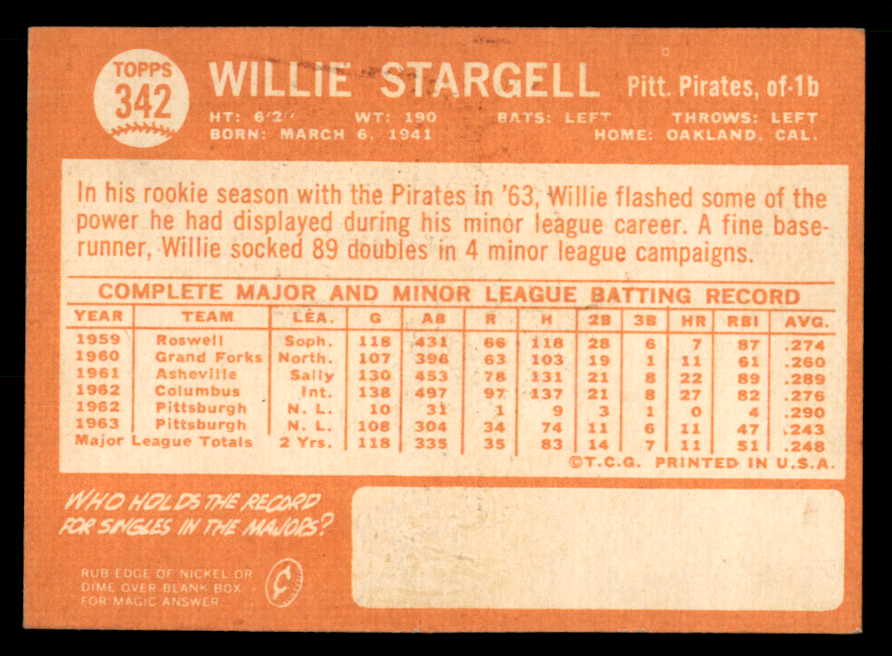 1964 Topps Baseball #342 Willie Stargell Pirates NR-MT 539723