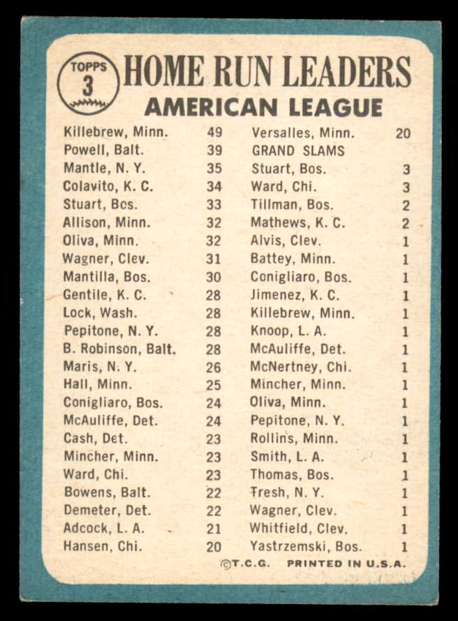 1965 Topps Baseball #003 A.L. Home Run Leaders Mickey Mantle VG-EX 543261
