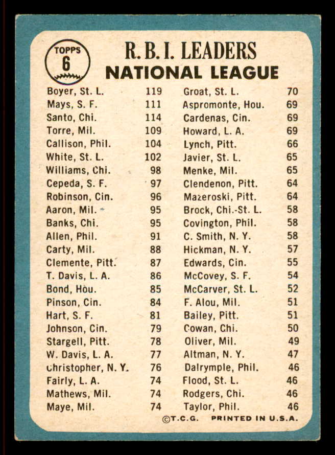 1965 Topps Baseball #006 N.L. RBI Leaders Willie Mays EX 542092