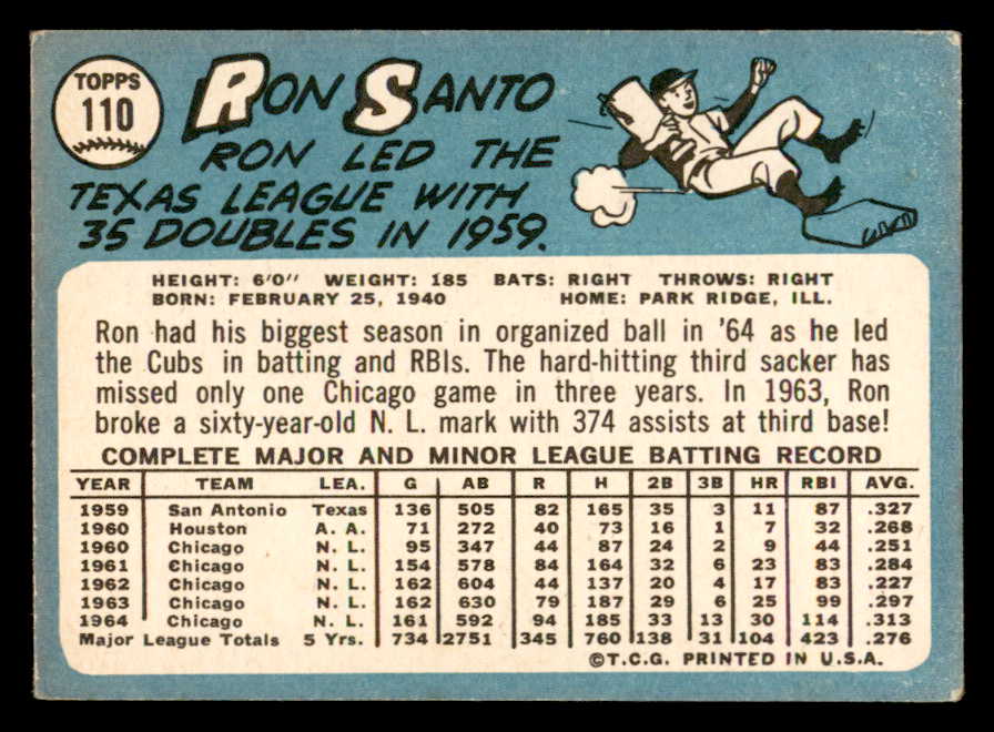 1965 Topps Baseball #110 Ron Santo Cubs VG-EX 546194