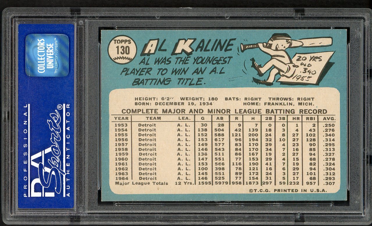 1965 Topps Baseball #130 Al Kaline Tigers PSA 7 NM 545325