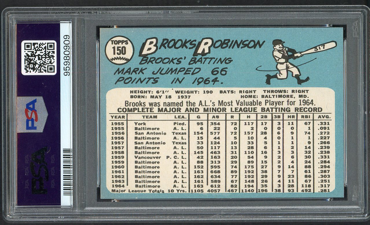 1965 Topps Baseball #150 Brooks Robinson Orioles PSA 7 NM 545309