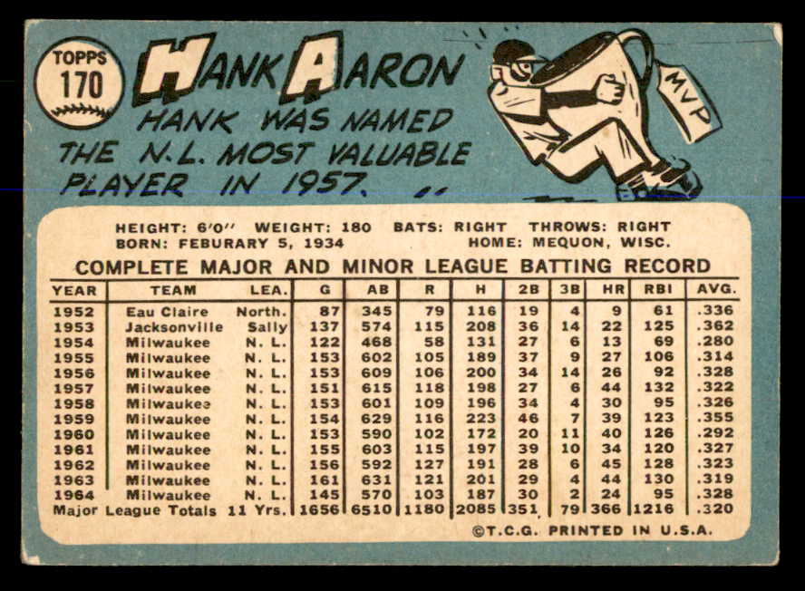 1965 Topps Baseball #170 Hank Aaron Braves EX 547933