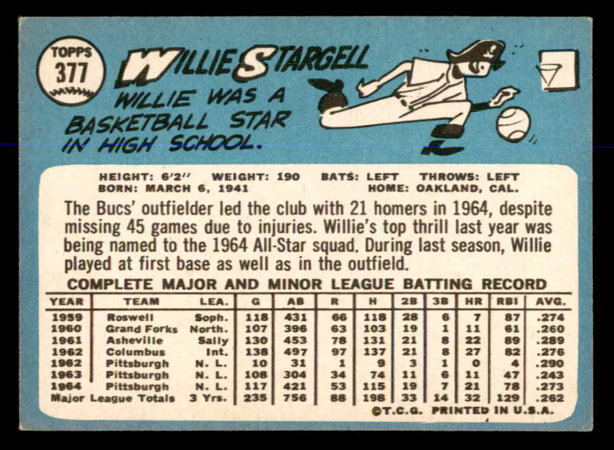 1965 Topps Baseball #377 Willie Stargell Pirates VG-EX 547940