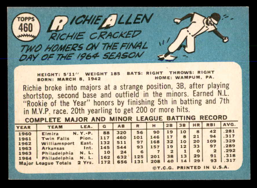 1965 Topps Baseball #460 Richie Allen Phillies EX-MT 547929