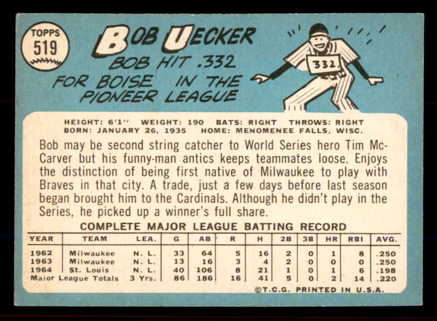 1965 Topps Baseball #519 Bob Uecker Cardinals NR-MT 545478
