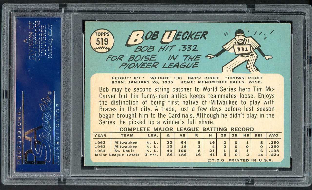 1965 Topps Baseball #519 Bob Uecker Cardinals PSA 6 EX-MT 545317