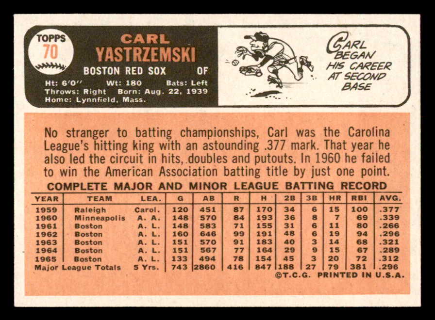 1966 Topps Baseball #070 Carl Yastrzemski Red Sox NR-MT 539025