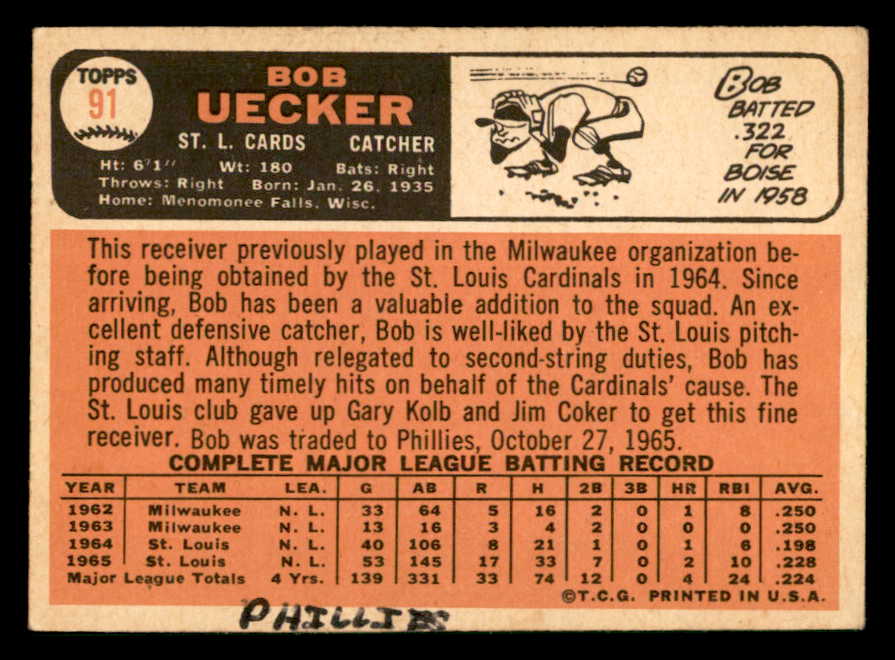 1966 Topps Baseball #091 Bob Uecker Cardinals FR-GD Trade 541756
