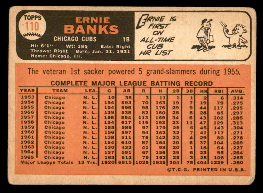 1966 Topps Baseball #110 Ernie Banks Cubs GD-VG 540876
