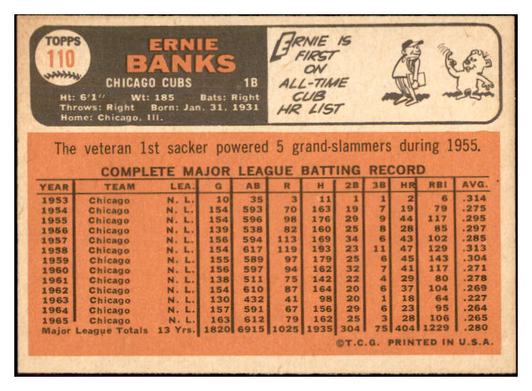 1966 Topps Baseball #110 Ernie Banks Cubs NR-MT 534365