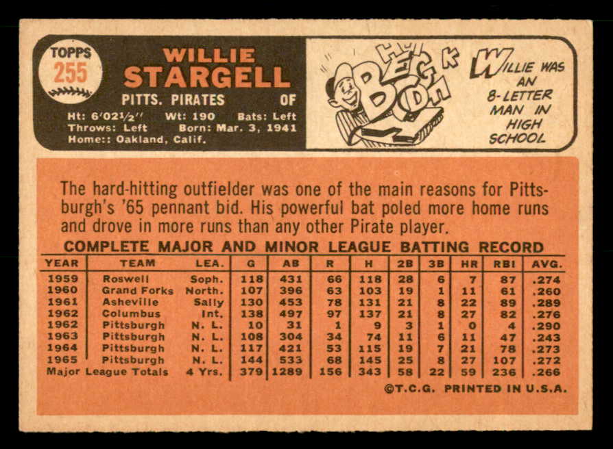 1966 Topps Baseball #255 Willie Stargell Pirates EX-MT 539770