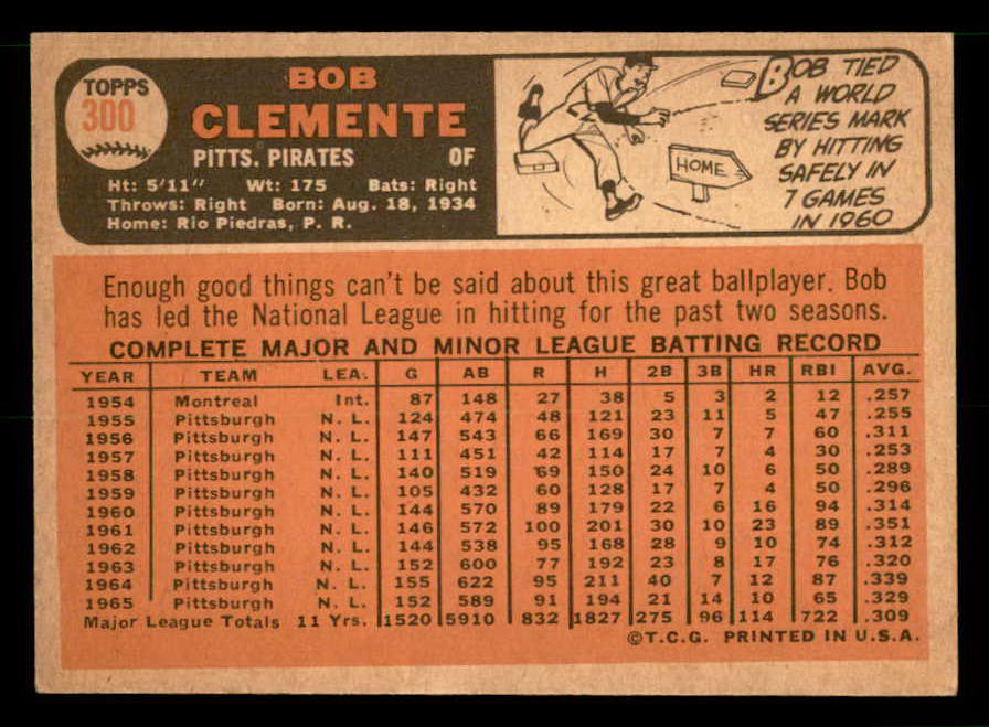 1966 Topps Baseball #300 Roberto Clemente Pirates EX-MT 539762