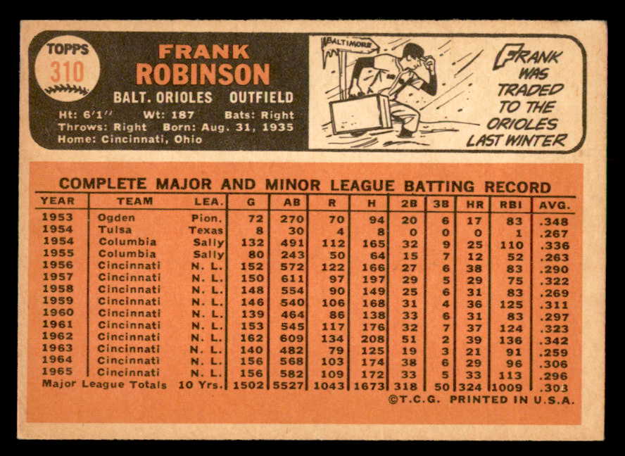 1966 Topps Baseball #310 Frank Robinson Orioles EX 539022