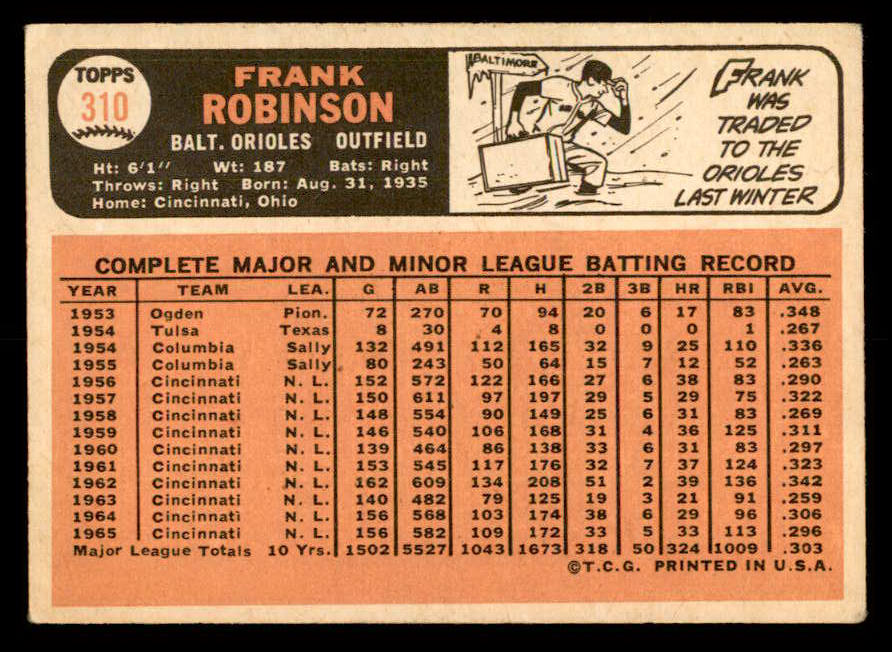 1966 Topps Baseball #310 Frank Robinson Orioles EX 540863