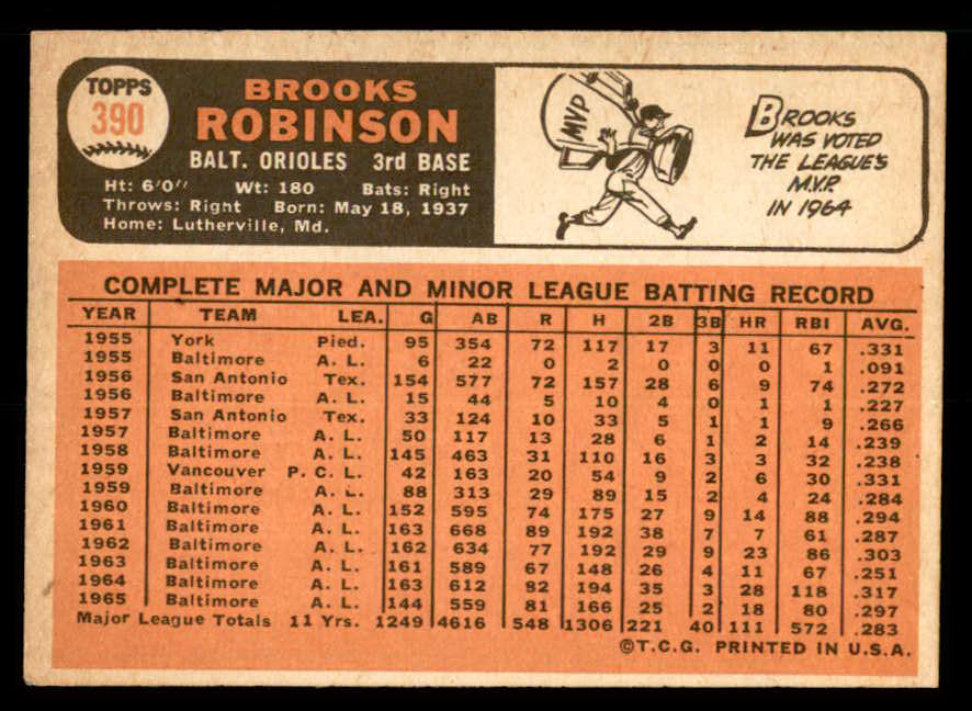 1966 Topps Baseball #390 Brooks Robinson Orioles EX-MT 539783