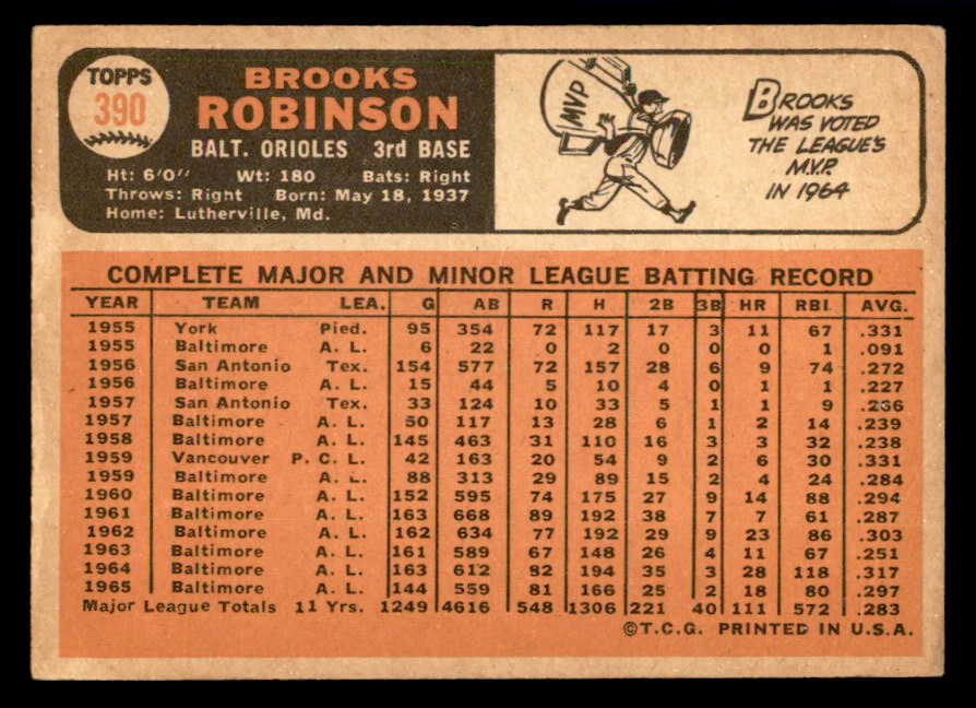 1966 Topps Baseball #390 Brooks Robinson Orioles VG-EX 540862