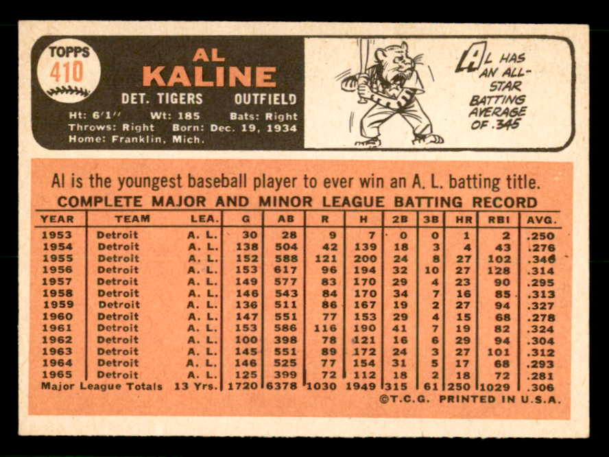 1966 Topps Baseball #410 Al Kaline Tigers EX-MT 539780