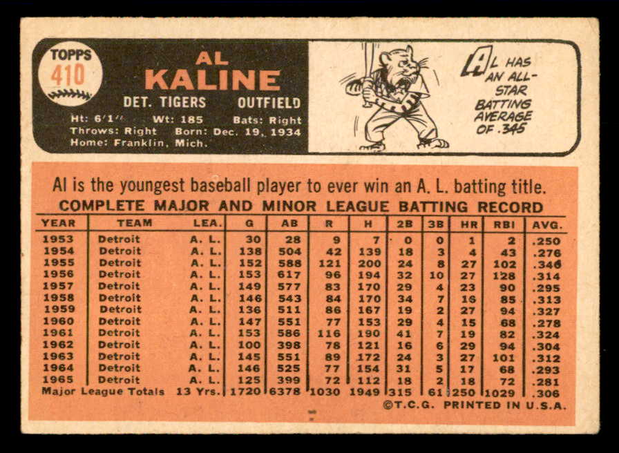 1966 Topps Baseball #410 Al Kaline Tigers VG-EX 540887
